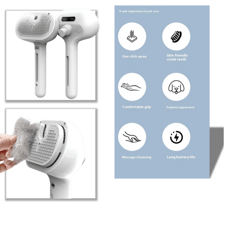Discover our 3-in-1 steam brush that grooms, massages, and removes loose hair with ease. The durable ABS body and stainless steel comb teeth ensure a gentle yet effective grooming experience. Perfect for long or short coats and designed to minimize airborne fur particles.